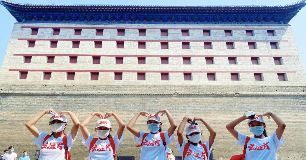 刚抵达永宁门入口,同学们就迫不及待的比个剪刀手和美景合影留念,在过去2天和西安的相处中,“去远方”小分队似乎已经融入西安这里的一草一木,更加能够勇敢、自信、从容的表达和展现最好的自己。