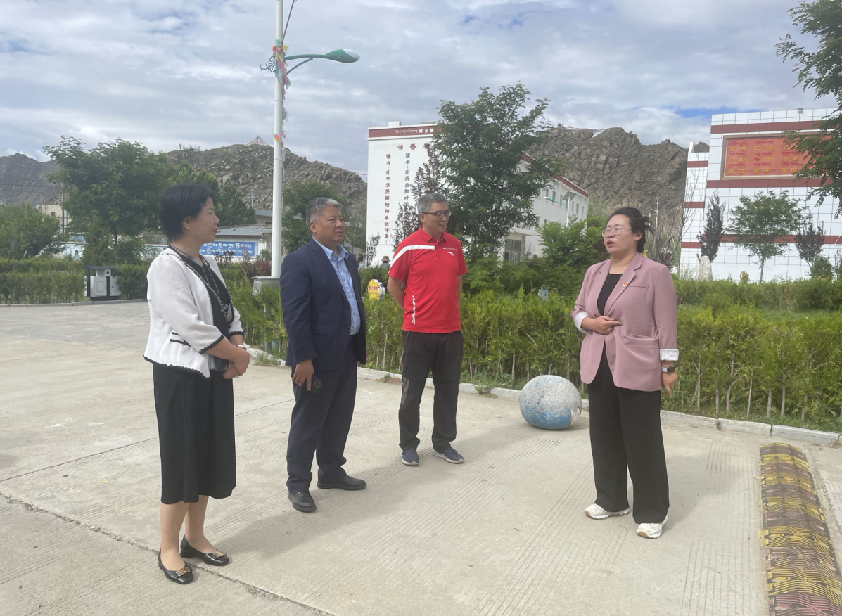仪式开始前,曲水县小学党支部书记赵玲娜带领参会人员一同参观了校园,并对学校优秀教学成果、教学设施、师资力量等进行了介绍,宽广美丽的校园矗立在群山之中,书香的特色为这所高原上的美丽校园增添浓厚校园文化气息,梦想中心的落成更给这所学校带来现代化素养教育生机和活力。