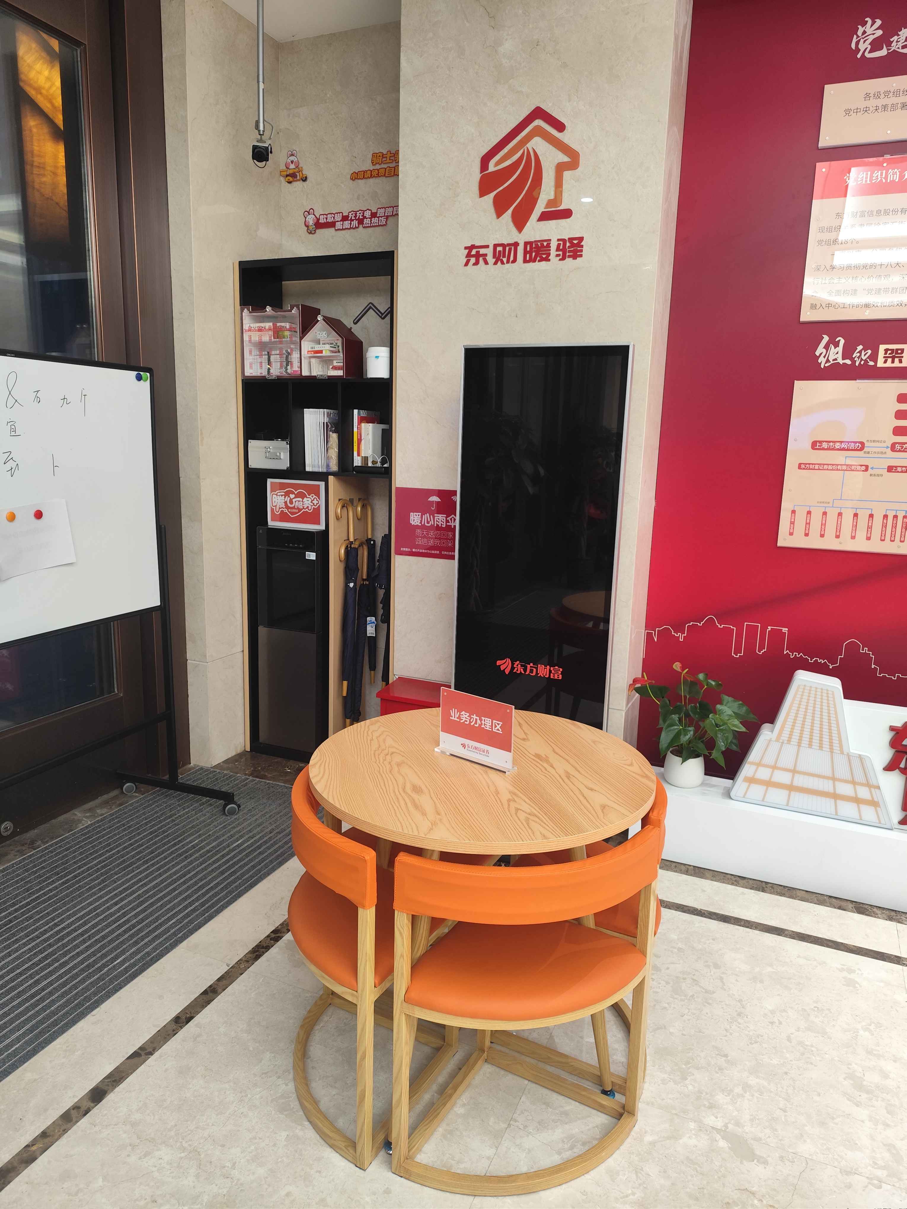 “东财暖驿”是徐家汇“骑士驿站”的站点之一,也是东方财富打造窗口服务党建品牌之一。第一个“东财暖驿”位于宛平南路88号总部一楼上海分公司大厅入口处,休息座椅、饮水机、小药箱等设施整齐排列。该服务站面向外卖小哥、环卫工人等群体开放,提供避暑取暖、歇脚充电、饮水就餐等贴心服务,助力构筑新业态、新就业群体“15分钟服务圈”。