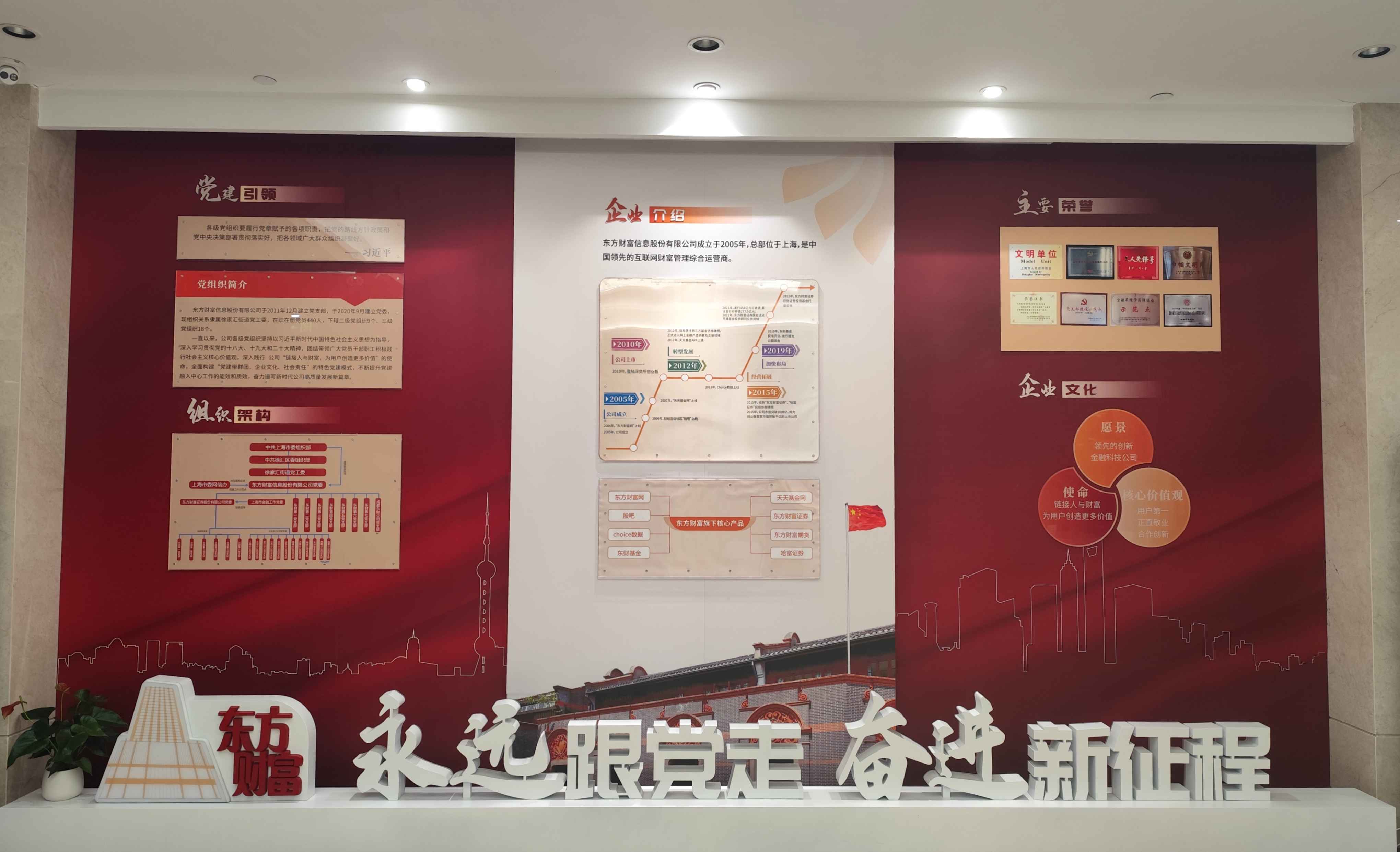 “公司党组织及企业简介”区详细展示了东方财富党组织的历史、组织架构以及企业重要发展历程,多方位展现了公司在创先争优、践行社会责任等方面所获的各项荣誉,为参观者在最短时间内直观了解公司打开一扇崭新窗口。