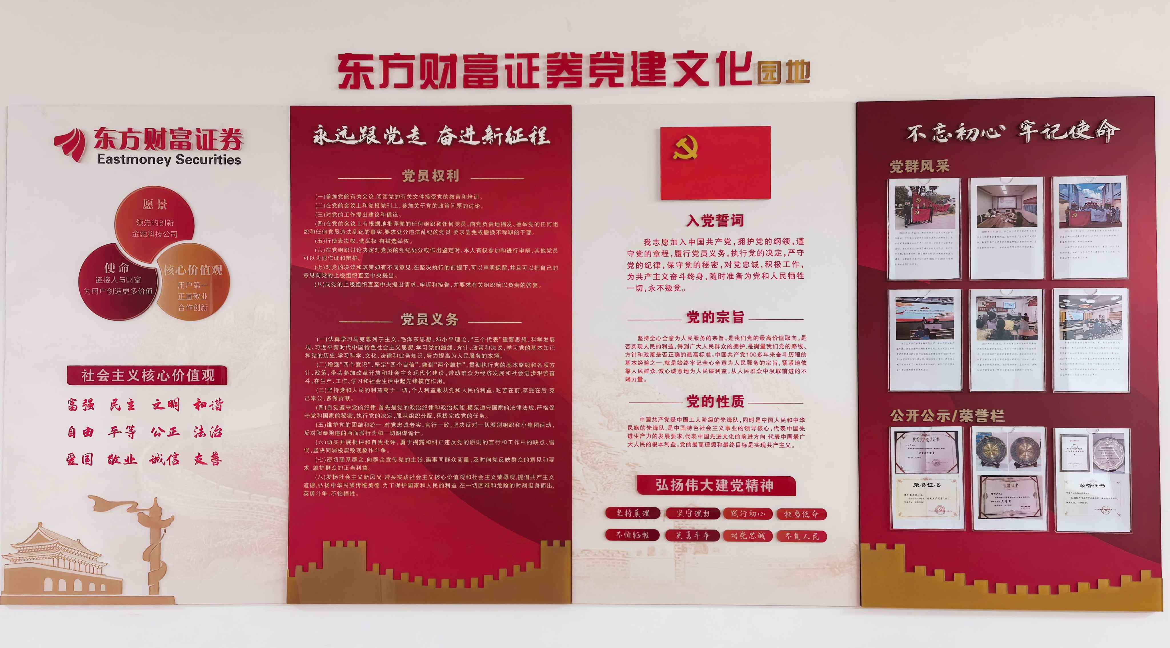 东方财富证券党建文化阵地建设,进一步增强了公司党组织的凝聚力、战斗力,厚植了广大员工对企业文化理念认同,为公司高质量发展注入强劲的价值引领。未来,公司将以此党建文化阵地建设为契机,不断探索党建引领高质量发展的新路径,发挥窗口服务社会、服务用户、服务职工的职能,厚植“金融为民”本源,提升服务窗口良好形象!
