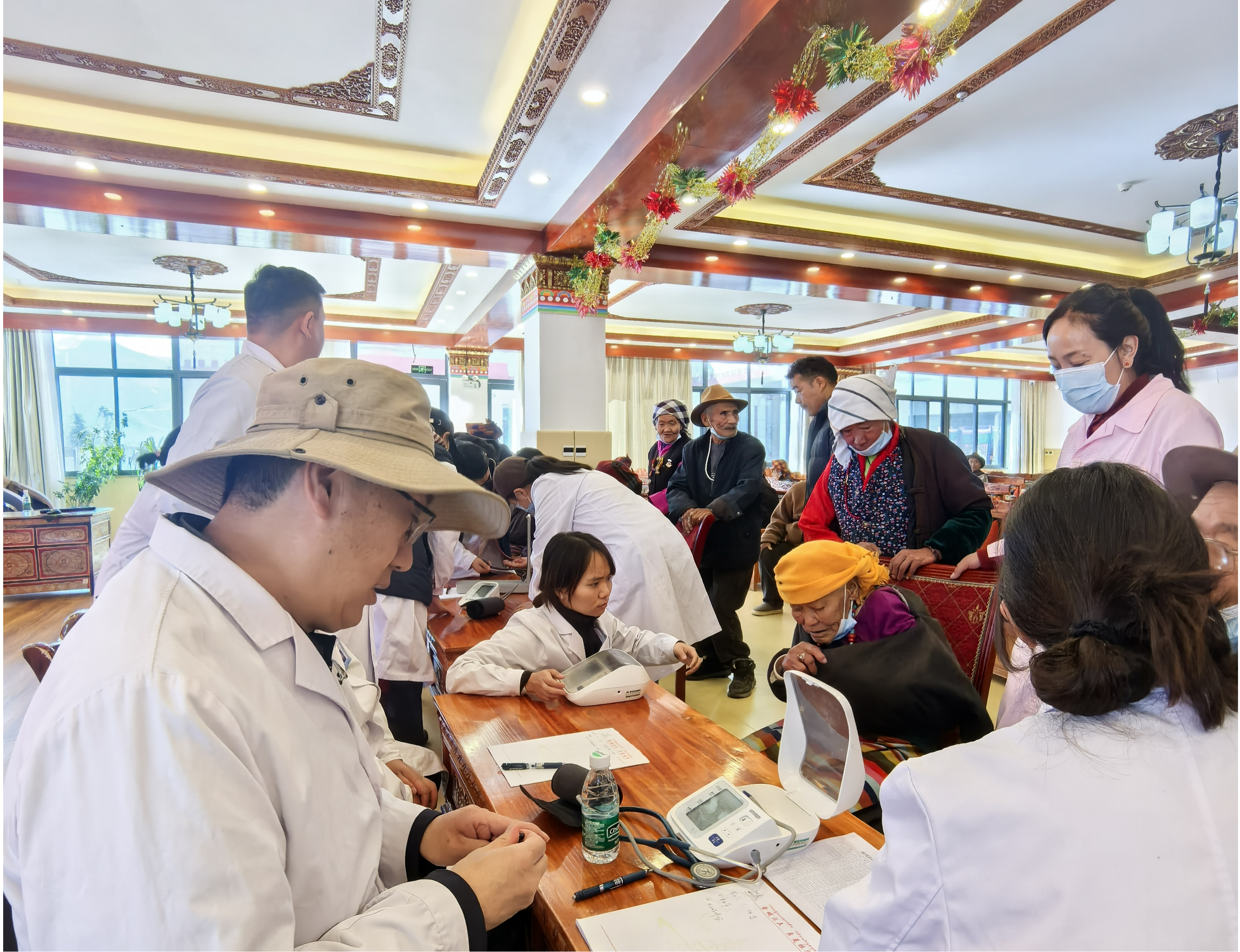11月23日,西藏自治区人民医院副院长、西藏高原医学研究所所长格桑罗布主任医师率队,联合高原医学研究所党支部、心血管内科党支部以及北京阜外医院心血管援藏专家,组成了涵盖心血管、消化内科、内分泌科等多专业的强大义诊团队奔赴林周县特困服务中心,开展“东方财富-高原性疾病义诊”活动。