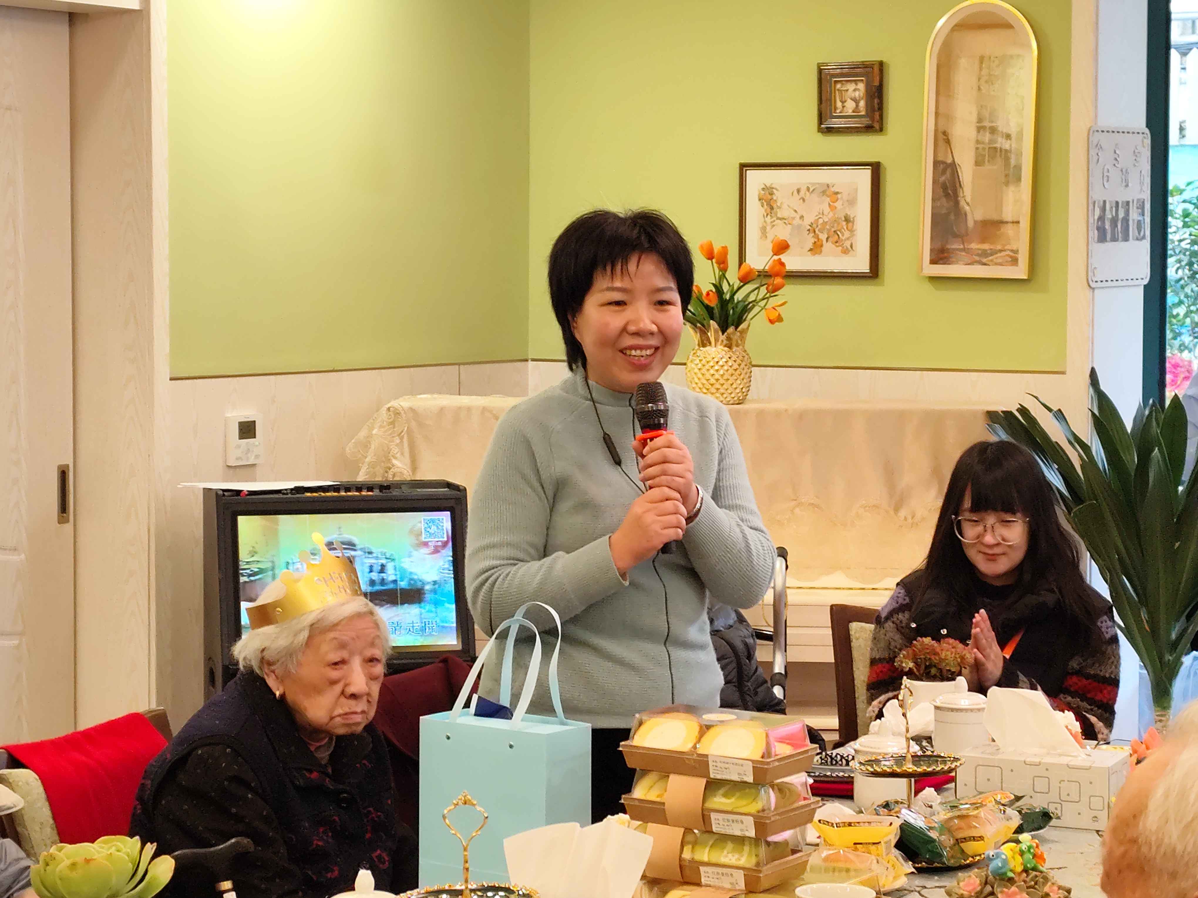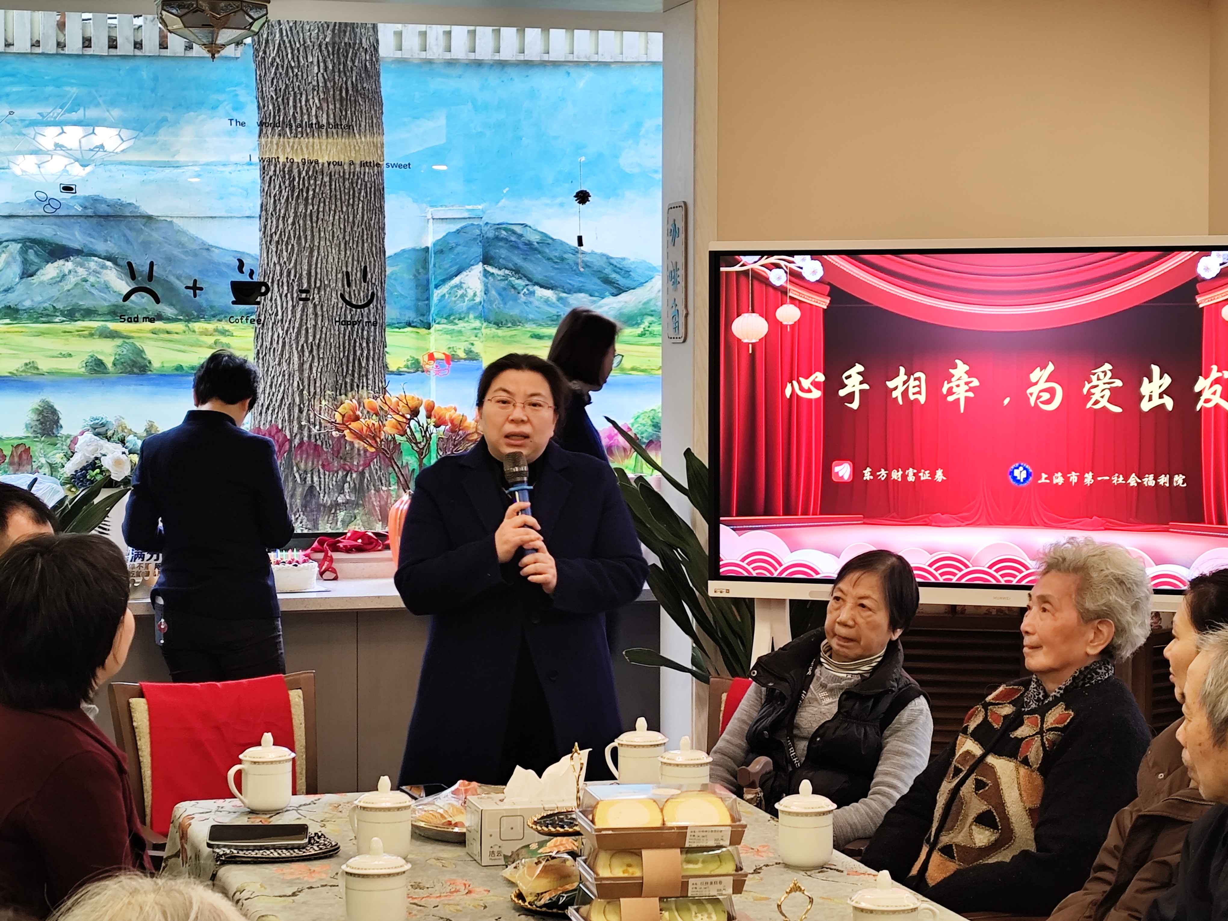 东方财富证券总部第一党支部书记栗彦代表志愿者致辞,她首先对福利院、徐家汇街道党群服务中心、集团公司党委对本次活动的大力支持表示感谢。她表示,老年人是社会的宝贵财富,是我们学习的榜样。希望我们的到来在新的一年中能为老人们的生活增添一份温暖和欢乐,同时也从前辈们的身上汲取前进的动力,并祝长辈们晚年生活幸福美满。