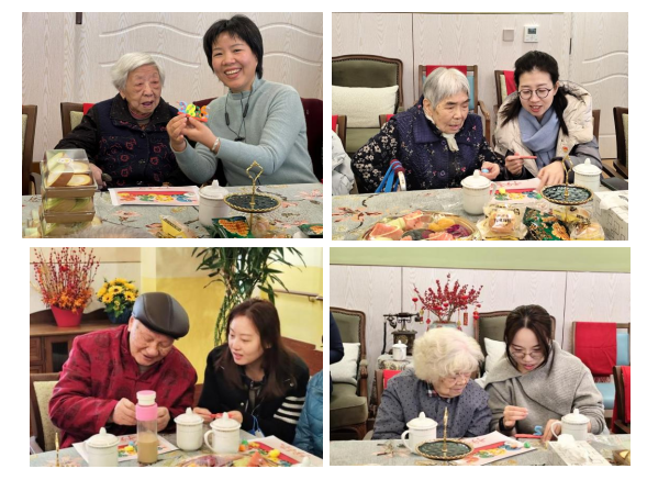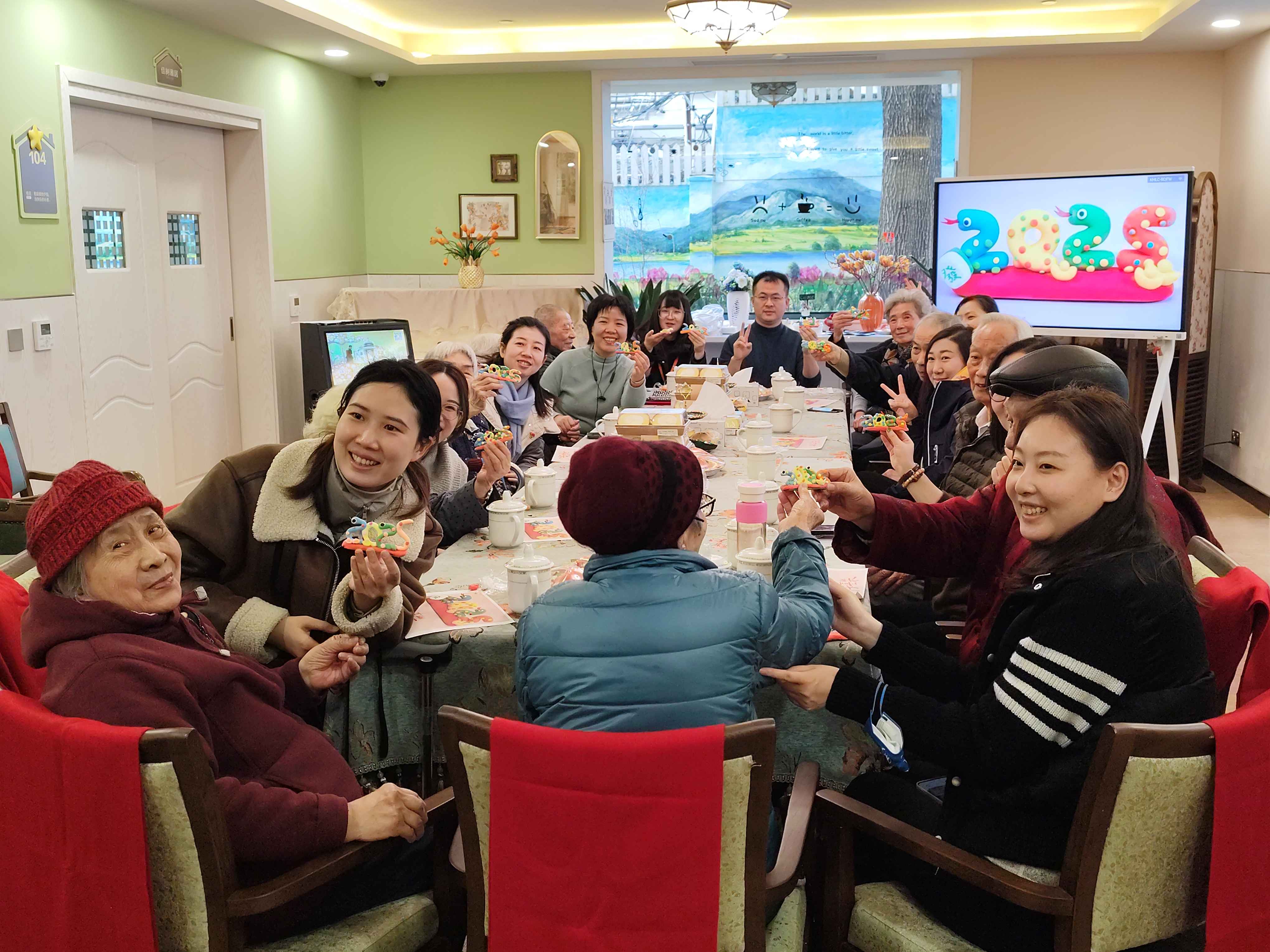 福利院还为大家精心安排了一场陪伴老人的“金蛇纳福”手工制作,增添了欢乐、祥和、温馨的节日氛围。大家围坐在一起,手把手地与老人们共同制作精美的2025金蛇纳福字样的橡皮泥手工艺品。