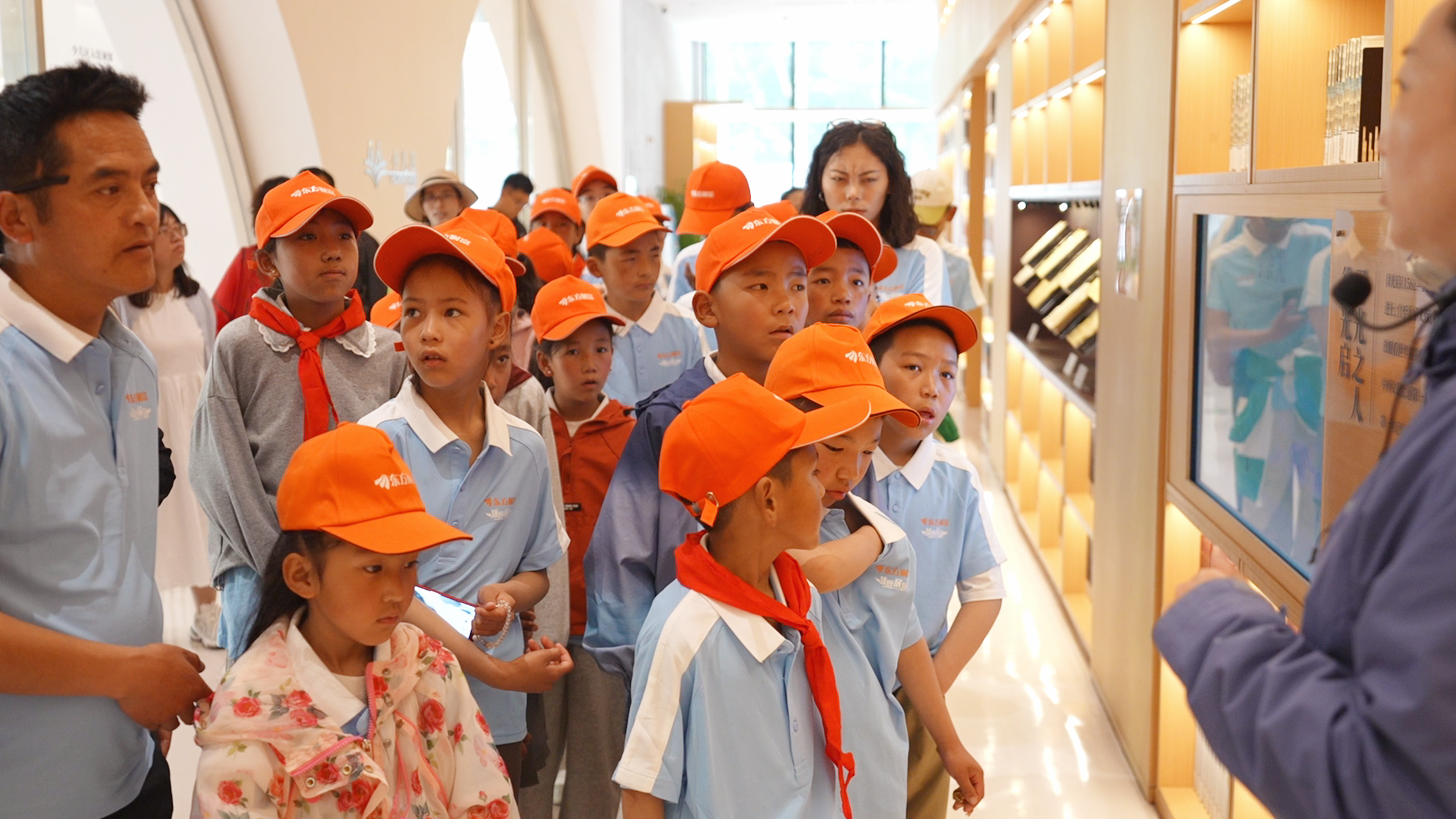 在东方财富党建文化长廊,师生们驻足凝视、聆听着东方财富企业发展历程和公益故事,如同打开一扇温暖的窗,了解了东方财富成长史及与西藏的深厚渊源。公益展区,同学们认真聆听讲解,看着画面中熟悉的家乡风景。“原来东方财富的叔叔阿姨们一直在默默守护着我们的家乡”,这句轻声的感叹,道出了所有孩子的心声。