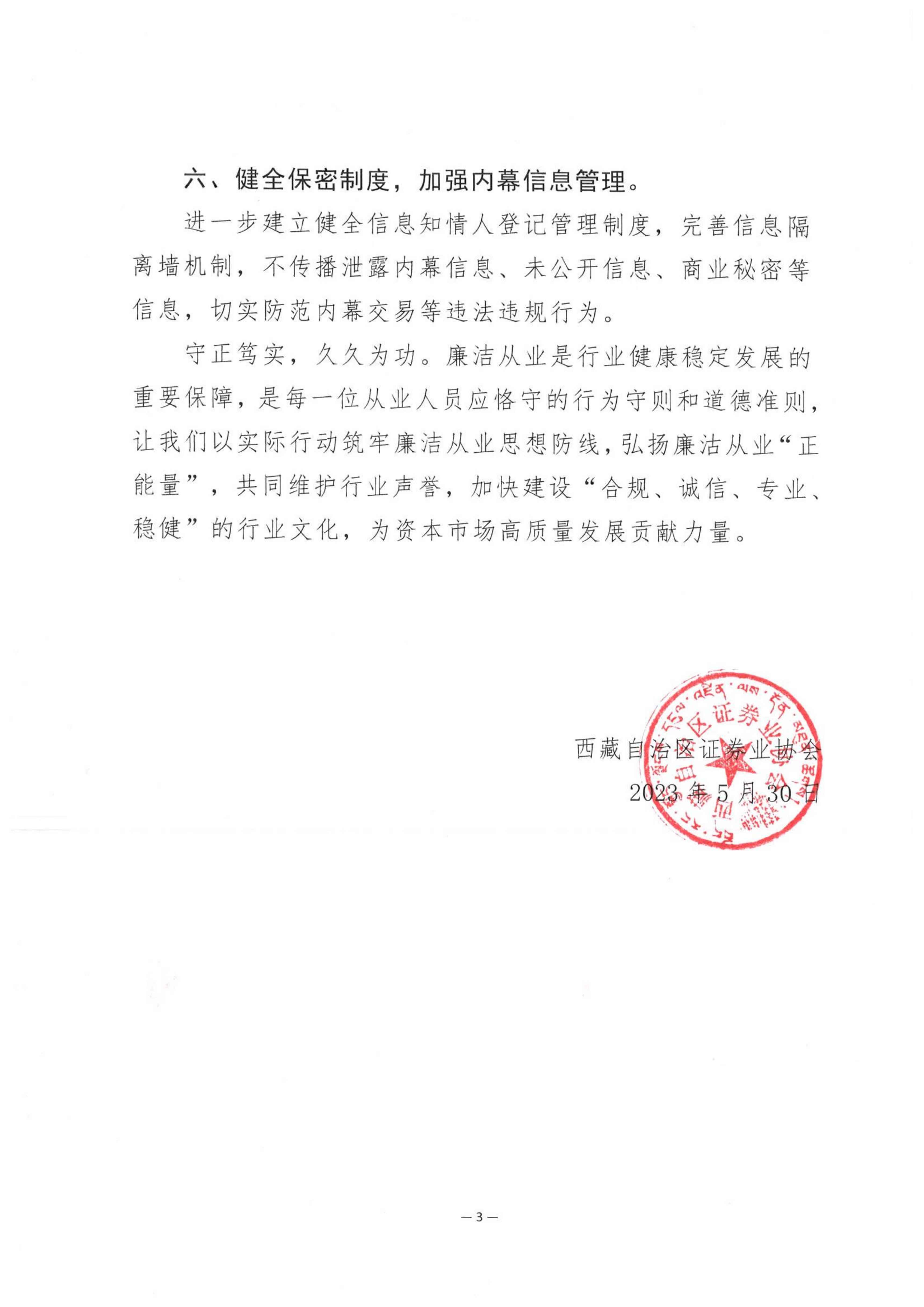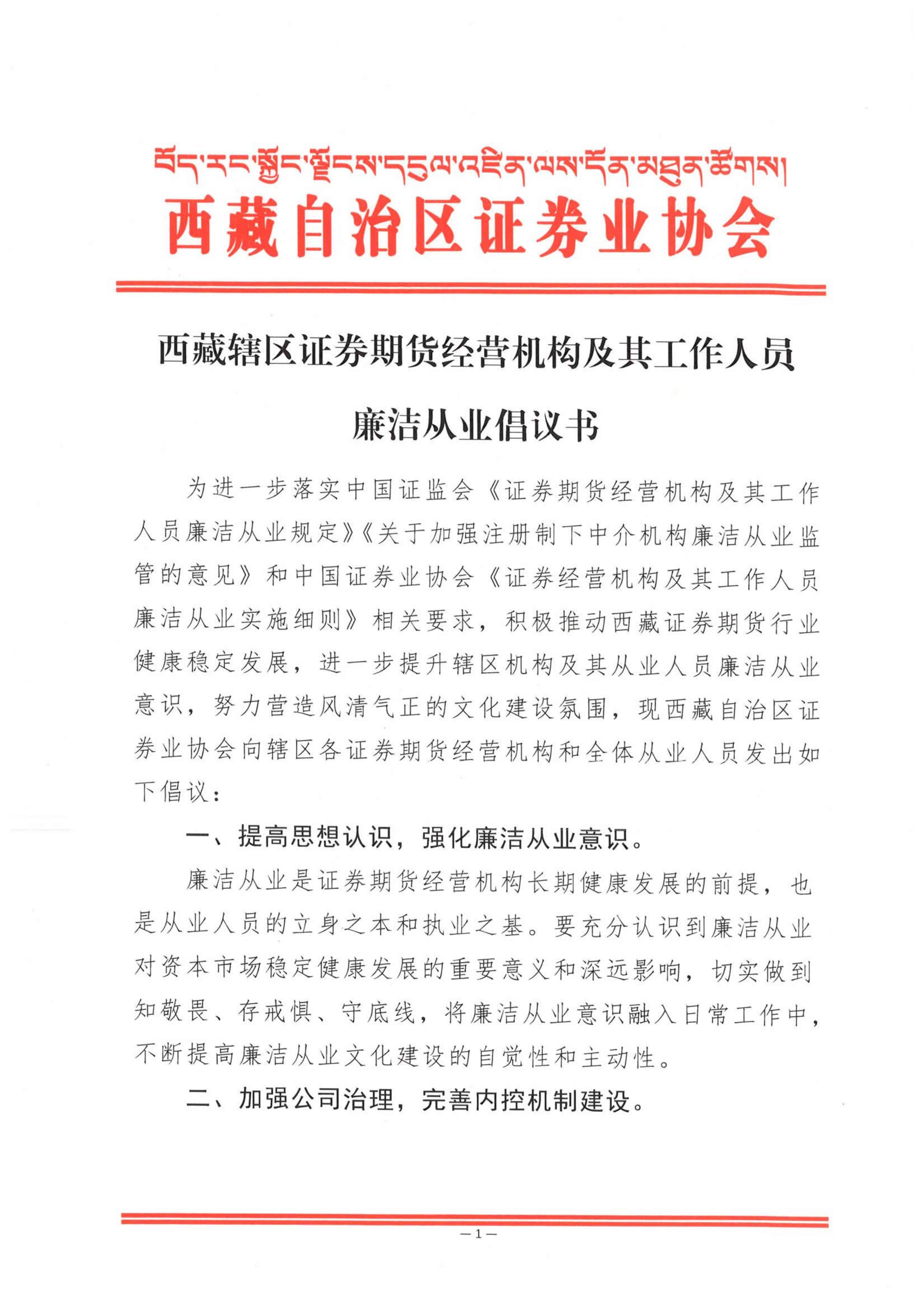 西藏辖区证券期货经营机构及其工作人员廉洁从业倡议书